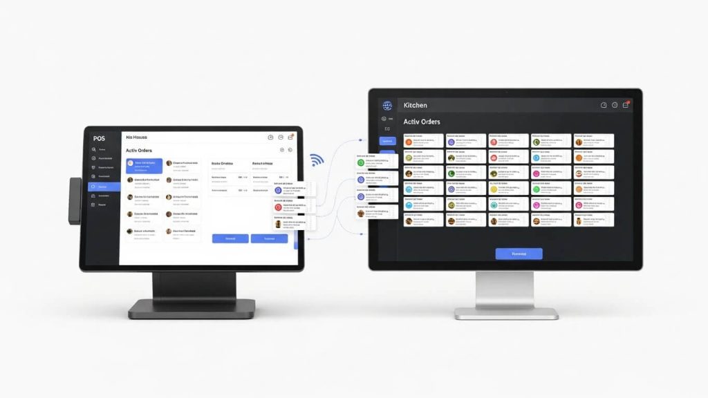 The Kitchen Display System replaces paper tickets with a digital screen that keeps every order organised in real time in UK restaurant kitchens. It connects directly to the POS, increasing kitchen speed and reducing errors.